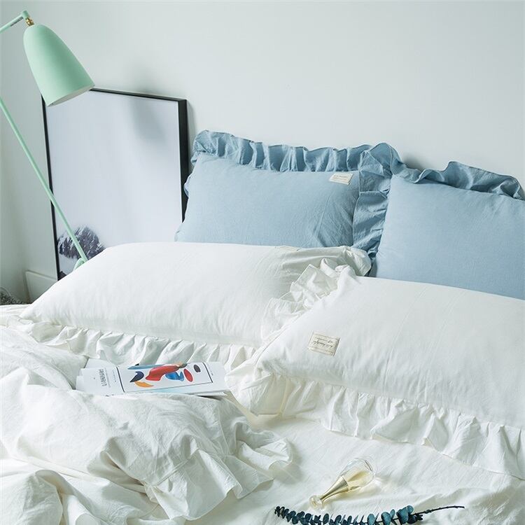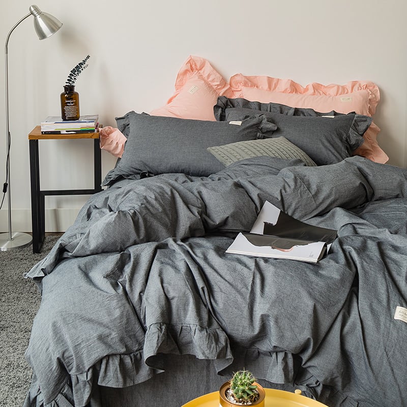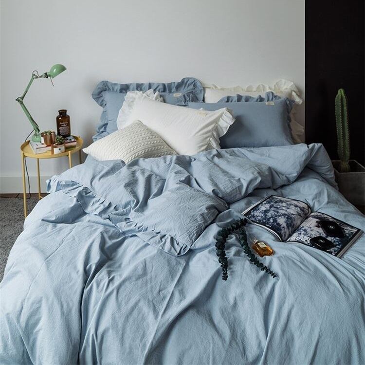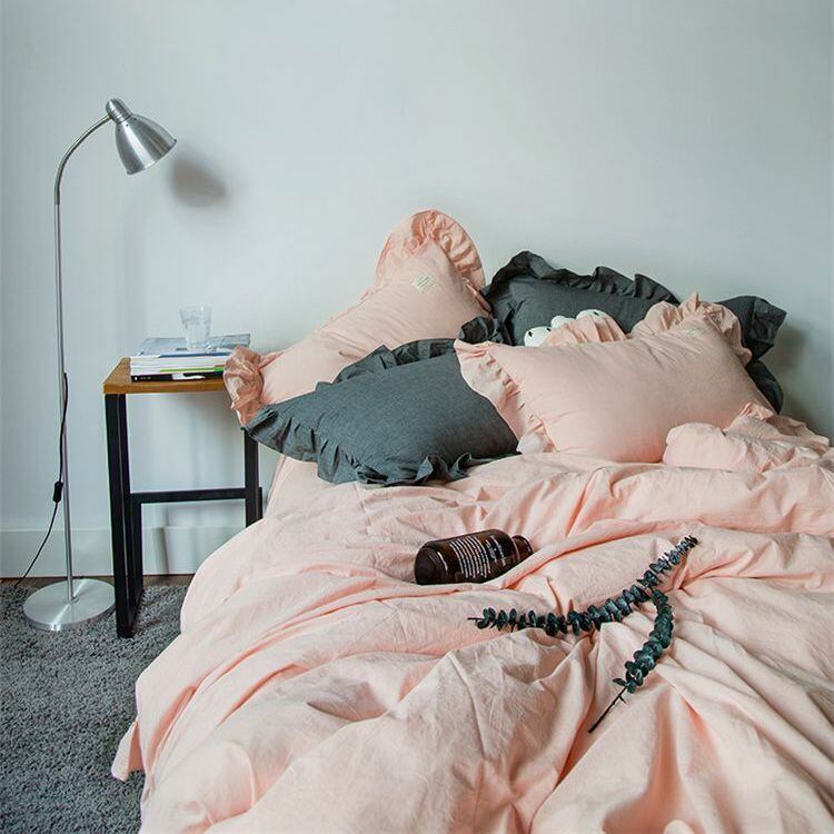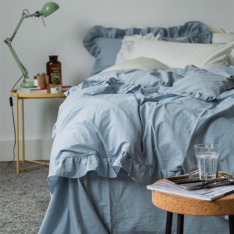 【SALE!!】即納☆キレイカラー フリルデザイン シンプル可愛い コットン ベッドカバー 4点セット
